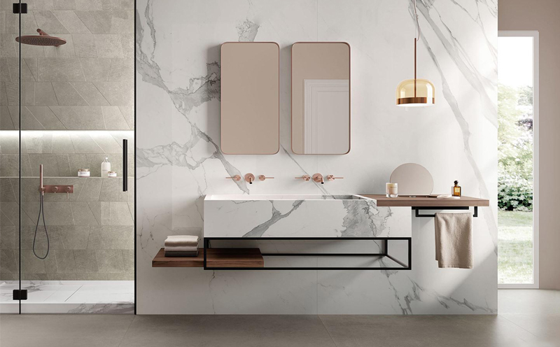 2、在做衛(wèi)生間瓷磚的表面施工的時候要首先用玻璃鉆將瓷磚打穿,也可以用鋼釘、錘子等小巧的工具將瓷磚打穿,再用電錘打空以避免打破瓷磚的磚體。